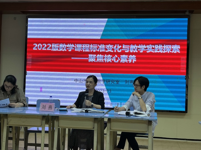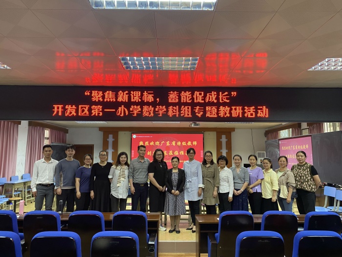 为加深数学教师对2022版数学课程标准的理解,深刻领会新课程标准内涵,4月10日下午,开发区第一小学在学校电教室开展以“聚焦新课标,蓄能促成长”为主题的数学专题教研活动。本次活动邀请中山市小学数学教研员刘燕校长到场指导,博文学校、开发区第二小学的数学教师代表参与了此次活动。