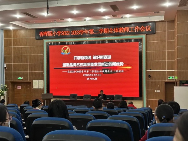 欧阳校长强调,在新时期、新阶段、新学期,如何全力推进品牌名校高质量发展,是值得每位香小人深度思考的问题。他从“学生的全面发展”“教师的专业发展”“品牌跨越”三个方面进行深入阐释,对新学期的学校工作进行了整体规划布置。他重点指出了教师要有高度的自我修养,分析了教师提升自我修养的必要性。他希望香晖园小学每一位教师员工始终保持与时俱进的精神状态,以更积极的工作态度、更饱满的工作热情、更高的工作效率为学生的发展服务,唤醒、激发学生的内驱力,促进学生不断进步成长。