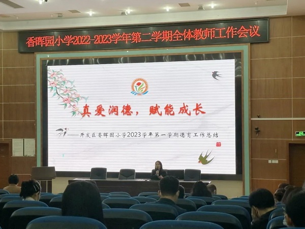 伴随着兔年元宵节的喜悦,满怀奋进新征程的豪情,2月5日上午,开发区香晖园小学在报告厅举行2023年春季新学期教师工作会议,会议由行政办副主任郑清云主持。