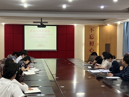 随后,心理科组长石硕老师向班主任做了关于“寻找心灵的契合”微讲座,指导班主任如何使用SFBT理念有效疏通学生负面情绪,做到与学生更有效地沟通。另外,针对班主任工作压力大的现状,石硕向班主任们介绍自我情绪调整的方法,她引用心理学大师荣格的一句话:“你永远不要有改变别人的念头。 你能够做的就是像太阳一样,只管发出你的光和你的热。”这些心理学知识为班主任的工作和情绪调整提供了有力的支撑。