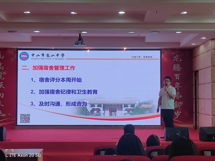 为了进一步加强学校德育工作的针对性和实效性,提高德育教学水平,明确新学期德育工作方向。近日,中山市龙山中学召开了以“奋进超越,幸福育人”为主题的开学德育工作会议。全校德育、团委管理人员、各年级班主任、心理老师参加了本次会议。