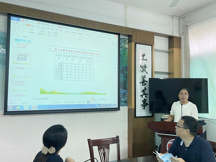 首先,语文科组长林韵玲老师结合常规教学实际状况和教学质量情况进行分析,认真分析数据、总结失分原因,从语文教学常规的落实情况、练习讲评是否到位、如何进行培优辅差等方面反思教学中存在的不足。会议上林老师还列举部分年级的典型阅读题目进行分析指导,帮助语文老师理清出题思路和教学重点,为语文老师今后的教学指明了方向。