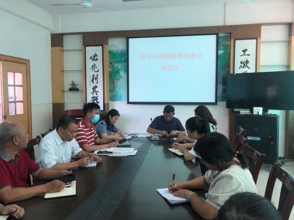2020年7月17日上午,中山市民众镇新平小学在会议室召开“师德师风”教育主题会。参加会议的有陆锐勋校长、汤斌英副校长和全体教师,会议由德育处陈福有主任主持。
