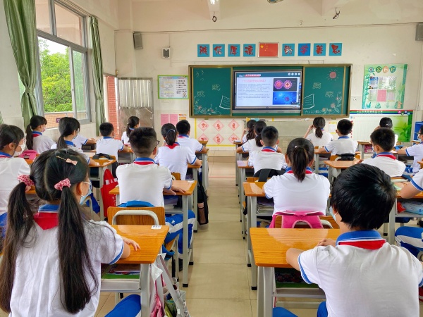 随着新冠疫情的控制,5月18日,南朗镇榄边小学的师生踏进了久违的美丽校园。为了做好校园疫情的防控工作,提高学生的卫生安全意识,让学生树立正确的“英雄观”,迎接新学期挑战。榄边小学在开学第一天给四五六年级开展了“复学第一课”主题班会。