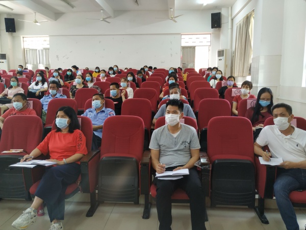 为切实做好新冠肺炎疫情防控工作,提高应对新冠肺炎疫情的快速处置能力,确保“安全、平稳、有序”返校复学,南朗镇榄边小学于5月8日下午,在榄边小学阶梯室召开了2020年春季学期返校复学全体教职员工防疫培训会。