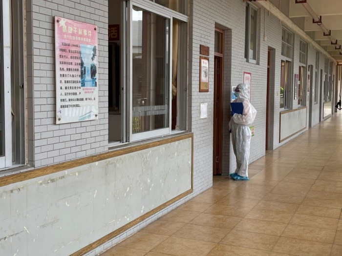 启动预案后,袁校长马上让教导处魏红丽主任查询小华同学的动向,确认该同学正在六(1)班的课室上早读课。班主任督促同学们带好口罩,原地待命。不一会,校医全副武装出现在六(1)班门前,一边安抚小华同学的情绪,一边把他带到留观室,然后将情况告知学校疫情防控领导小组,并协助街道疫情防控指挥部人员将小华同学转移到指定的场所。