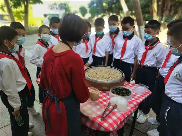表演结束后,同学们在醒狮队员的指导下感受了顶狮的乐、醉龙的步伐、品尝三乡茶果,制作茶果 。整个下午其乐融融,以至于离开时同学们都有些恋恋不舍,他们既收获了快乐,也了解了中山非物质文化的一些知识。
