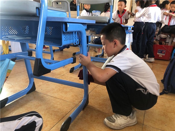 各班级负责清洁相应的教室和公共地区。活动中,同学们在老师的指导下,全面打扫教室各个角落,清理地面上的污渍,扫除教室墙面上小纸片和杂物,清洁整理图书角、讲台上的粉尘杂物,擦洗课桌椅、黑板、玻璃窗台和墙脚的污渍。在各班的包干区,同学们顶着烈日,快速拔掉杂草,捡起干枯树叶,夹起角落里的每一张废纸,打扫每一处垃圾。教室外阳光炽热,教室里热情洋溢,一张张劳动中的脸红扑扑的,伴着笑容在校园里格外美丽。环顾校园,大家干劲十足,积极热情地完成各项劳动任务,从教室到功能室,再到各班的包干区,每个角落都能看到同学们劳动的身影,到处都是热火朝天的劳动景象,整个卫生清洁活动井然有序地进行着。