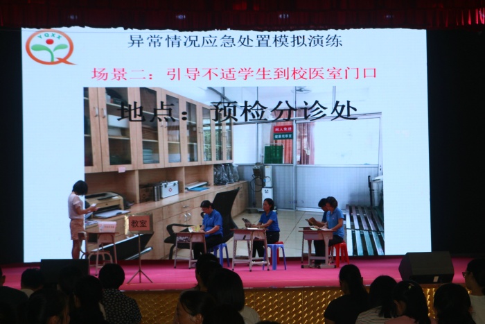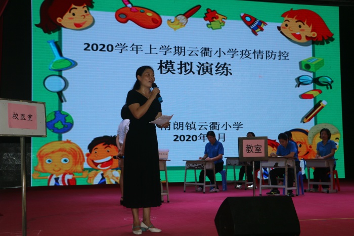 上午10点,南朗云衢小学全体教职员工集中在学校艺体中心。首先阮连凤副组长详细地讲解了五个场景的操作要点:一是师生入校体温检测场景;二是师生进入学校后人员分流场景;三是教学区作息场景; 四是学生用餐场景;五是出现学生异常情况的应急处置。