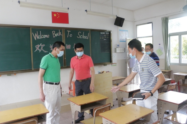 5月17日上午,南朗镇党委书记刘锐濠、镇党委委员、副镇长文庆华、镇教育事务指导中心负责人黄嘉宏来到云衢小学检查指导复课开学准备工作落实情况,对学校复课开学工作进行了现场检查与指导。