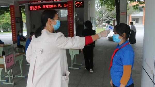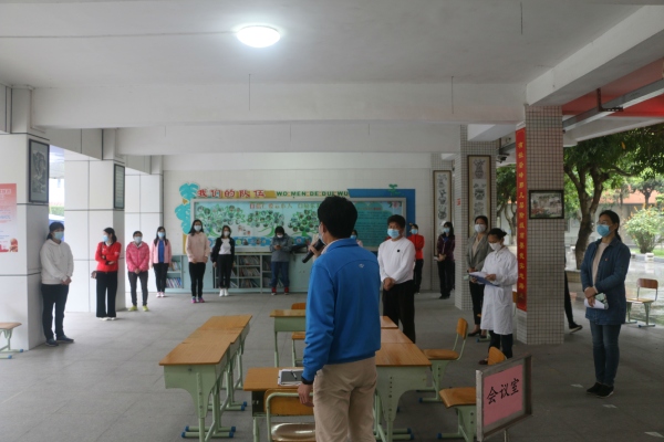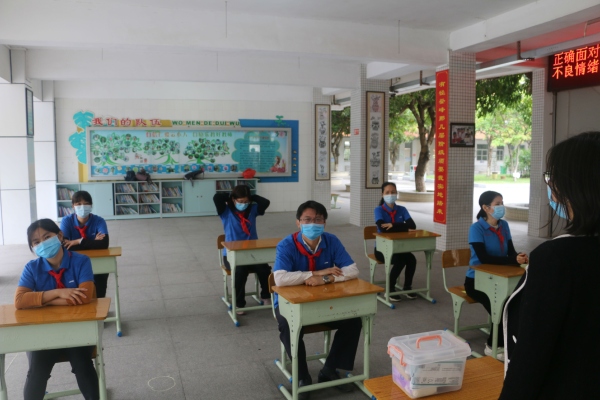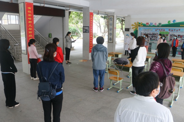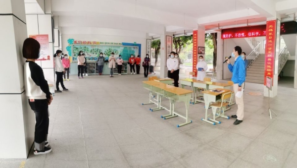 在阮连凤副组长的科学指导下,学校疫情防控领导小组及各教职工党员同志努力下,学校进行了正常返校上学一日常规场景模拟:入校体温检测场景;师生进入学校后人员分流场景;教学区作息场景; 学生用餐场景。