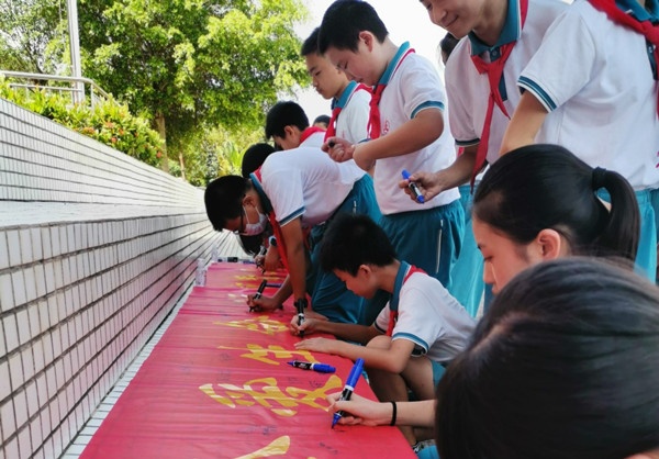 6月20日,全校开展了“无毒青春 健康生活”为主题的书法比赛活动。一到六年级每班三位学生参加,在规定时间内书写禁毒诗一首。比赛现场选手们一个个凝神静气,将注意力都集中在笔尖,在专注每一笔画的同时关注整首诗的结构和谐。此次书法比赛,以传统书法为载体,广泛宣传禁毒知识,让他们在创作和欣赏艺术作品的同时,提高识毒、防毒、拒毒的能力,为深入推进6·26毒品预防教育营造良好氛围。