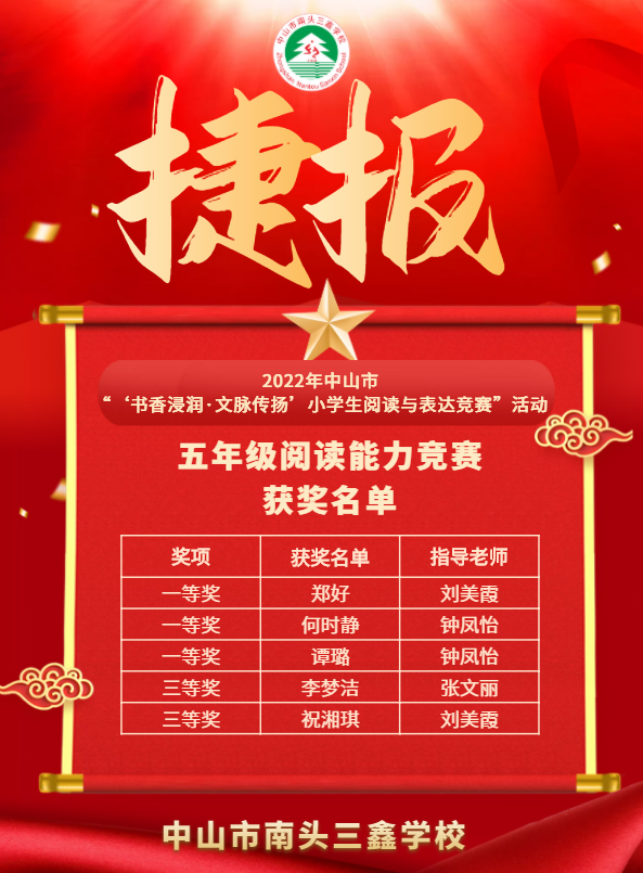 本次赛事包括四年级作文竞赛、五年级阅读能力竞赛、六年级诗歌创作竞赛。比赛结果于12月10日公布,中山市南头三鑫学校喜获佳绩,捷报频传。
