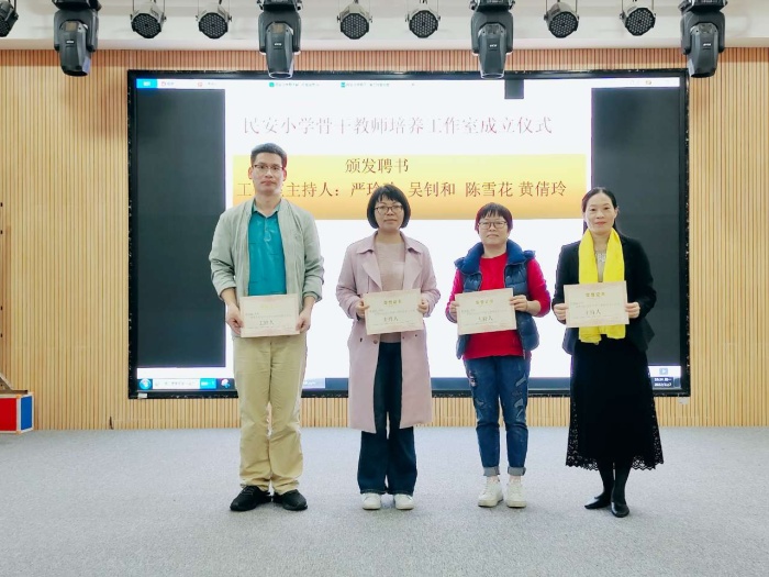 活动伊始,教导处卢丽萍主任宣布了骨干教师工作室和师徒结对名单。本次共成立4个骨干教师工作室,分为成长组和青年组。成长组由民安小学严玲珍校长主持,青年组则分别由骨干教师吴钊和、黄倩玲、陈雪花主持。其余则是新秀组,由14组师徒结对组成。骨干教师们带领几十名教师组成工作室团队,为民安小学的发展聚力赋能。