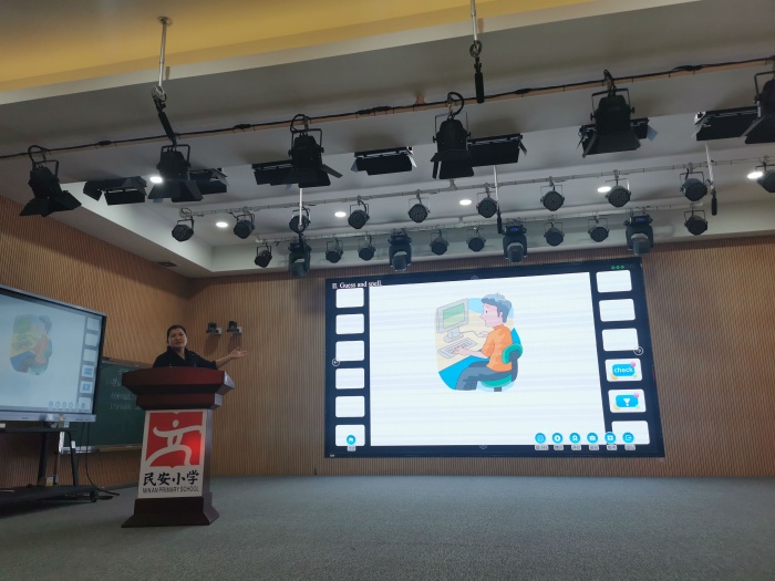 教务处的卢丽萍主任则通过具体单元的课例来展示了授课端的使用,介绍了如何通过单元主题整合资源进行单元整体教学,充分利用爱种子平台的微课等资源和平台的“自主学习”模块,提高学生预习和自主学习的能力,并引导教师们在“点点用”的基础上,改革创新,从逐步“改改用”到“创创用”,提高课堂的有效性。爱种子平台资源种类丰富,主题拓展中绘本为教学做了积极的补充 ,卢主任鼓励教师们应该整合教材与绘本的内容,为单元教学服务。