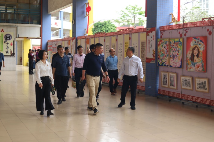 参访交流团在中心小学行政团队的带领下参观了校园环境和文化建设,走进花灯室、图书馆、科创室和心理辅导室,了解中心小学打造“弘扬传统文化”、“助力科创项目”、“关爱心理健康”等品牌课程的情况,将德育、传统文化、科创实践等素质教育有机结合的路径,对中心小学办学特色连连称赞并深受启发,对政府重视、学校建设、专业发展等工作给予了充分肯定。