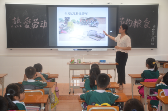 下午,各班老师组织班队课,观看粮食生产过程,讲勤俭节约的故事,使学生们深刻了解到一米一粟来之不易,知道了粮食的重要性。同时告诫学生爱粮、惜粮的重要性,让学生了解艰苦奋斗、勤俭节约是中华民族的传统美德,自觉从现在做起,从自身做起,养成勤俭节约的良好风尚。