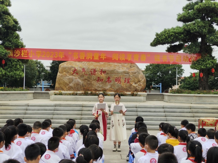 墨香悠远,浸润诗意童年。又是一年春来到,校园里散发着缕缕花香,也飘逸着浓浓书香。为激发师生、亲子之间阅读的兴趣,真正使他们体验阅读的快乐,4月7日上午,三角镇沙栏小学举行了2023年“书香润童年,阅读享青春”主题的读书节启动仪式。