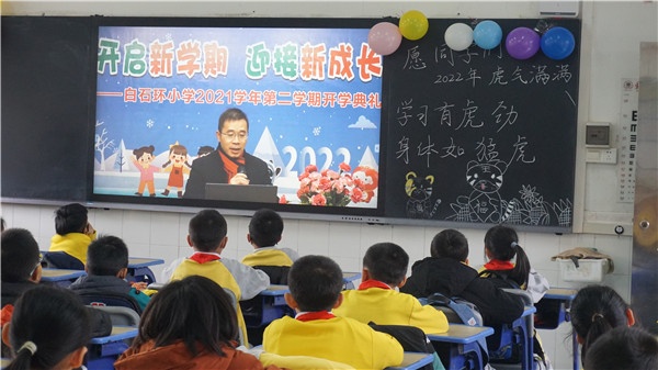 新学期,新气象,新挑战!为增强师生责任感和使命感,明确新学期的奋斗目标,营造浓厚的开学气氛,2022年2月14日上午,三乡镇白石环小学开展“开启新学期 迎接新成长”活动,迎接2021学年度第二学期开学日,全校师生在校门口喜收利是封,并于各班教室收看了刘世礼校长的新年寄语和思政第一课,以及由德育处主持的开学典礼。