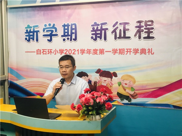 “新学期 新征程”,此次开学典礼,为新学期创造一个良好的开端,激励全校师生振奋精神、锐意进取,白石环小学全体师生定以良好的精神风貌投入新学期的工作和学习。