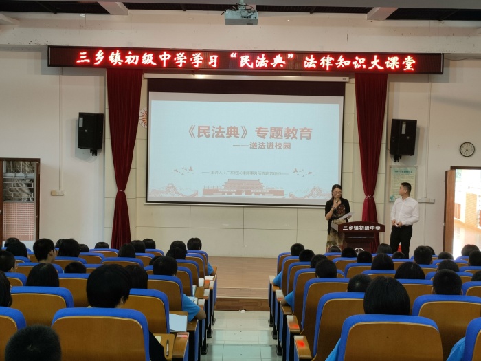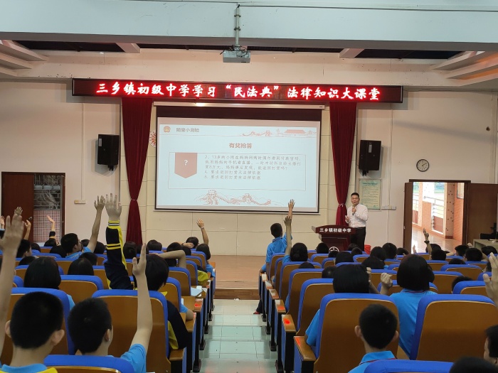 三乡中学将以此次《民法典》宣讲活动为契机,继续贯彻落实“法律进校园,为学生成长保驾护航”等精神,开展法治教育课程、法律知识竞赛和学术研讨等活动,进一步提升学校普法教育和依法治校水平,将法治校园建设真正落到实处。