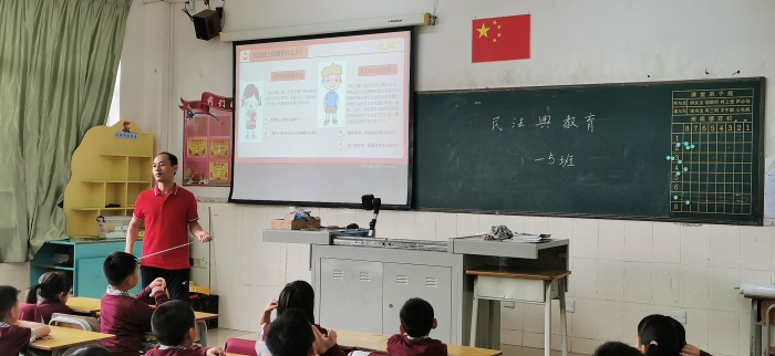 为帮助青少年树立良好的法治观念,增强青少年的法治安全意识,2020年10月28日上午11:20,新圩小学诚邀广东铭兴律师事务所陈路芳律师来到学校,为全体师生开展《民法典》普法宣讲活动,其中四年级学生到阶梯室现场听课。