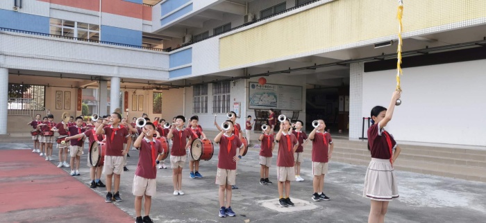 上午8:30,运动员进行曲响起,各班有序列队按照指定路线到达学校笃行堂参加庄重的升旗仪式,鼓号队员精神抖擞,鼓声整齐划一,旗手捧着鲜艳的国旗正步走到旗杆下,随着国歌的响起缓缓升起了国旗,队员们肃立敬礼!
