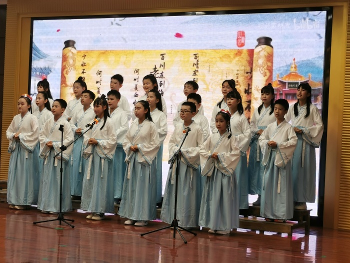 除了新圩小学领导外,三乡镇教育和体育事务指导中心林荣立副主任、三乡镇音乐中心教研组组长、平岚小学德育副主任梁艺君先生、新圩村委工作人员何泳鸿先生出席了本次活动。六年级学生在阶梯室现场观看汇演,其他年级学生和老师都在班级通过钉钉直播方式观看,家长们也能及时在云端上看到学校的精彩节目。看!雷妍珺老师指导的古筝重奏《云之南》拉开了本次汇演序幕,神秘宁静的香格里拉,风光旖旎的洱海苍山,美丽热情的西双版纳彩云之南,那梦幻般神奇的大自然油然而出。接下来的唱诵《长歌行》和《国学经典吟唱》,使星空体育谨记圣训,传承美德,让经典滋润童年,让书香伴星空体育成长。维妙维肖的舞蹈《进新房啦》、优美的合唱《大鱼》、激情四射,活力满满的拉丁舞《旋律》、独唱《啊!星星草》、酷炫又热辣的健美操《街舞的大合集》、整齐有力的歌曲联唱《民歌联唱》等节目让现场掌声不断,真可谓精彩纷呈!