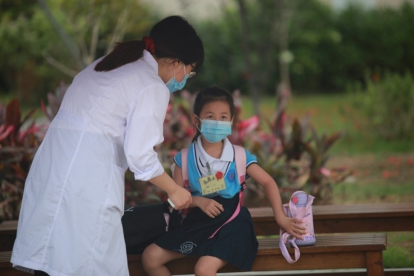 为确保学生们的安全有序返校,全体行政、亲子义工家长和值日老师早早地到达学校,满怀期待地等待着可爱的孩子们回归校园。在值日老师和亲子义工家长的引领下,学生们依次有序通过测温区,步入美丽的校园。一声声稚嫩的“老师好!”一张张充满朝气的笑脸,让整个校园顿时充满了生机和活力。