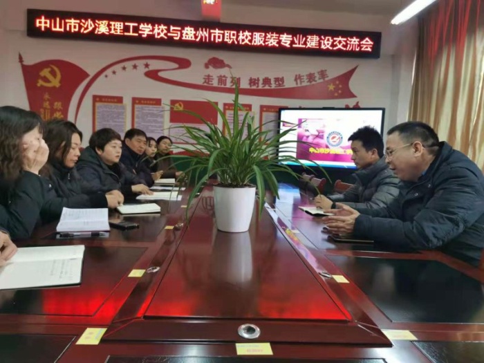 第三工作小组由沙溪理工学校办公室副主任邱祖怀、校企合作处部长李海钱对接盘州职校服装工程系主任汤仕丽。汤主任带领大家参观整个系部的实训场室,并详细介绍服装工程系的校企合作情况,并组织系部所有专业老师开展座谈交流会。深入了解服装工程系的专业发展现状后,工作小组对服装工程系的办学理念及专业发展表示赞赏,并根据现状针对性专业发展对接地方特色、校企合作实现产教融合的办学模式,提炼国际合作办学,开展现代学徒制、订单式人才培养模式,并把中山市沙溪理工学校的校企合作工作室课堂模式的成熟经验进行复制推广提升,并具体对各实训场室的进行具体的规划,下一步将协助服装工程系落实推进。
