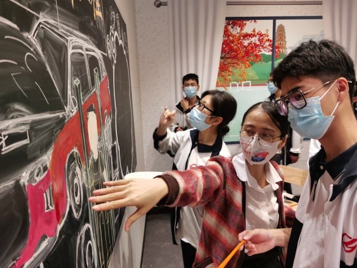 中山市博物馆联合市教育和体育局筹划并举办“书声满香城——中山教育特展”,向公众展示中山文教历史,展现香山建县以来的文化教育成果,助力文化兴城。10月19日下午,中山市沙溪理工学校受中山市博物馆邀请进行黑板报创作,打造展览的互动打卡空间。