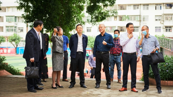 姜术俊一行先后深入学校汽车技术部、创意设计部等实训场室、学生宿舍、饭堂等地方实地考察,了解学校发展中遇到的困难和存在的短板,边参观边交流意见。