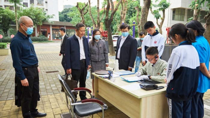 10月19日,中山市教育工委委员、市教育和体育局党组成员、副局长姜术俊一行到中山市溪理工学校进行调研,深入了解学校发展情况,想方设法共同解决学校在高水平、高质量发展中遇到的困难。市教体局四级调研员黄庆财,高职终科科长汤伟勋,安全保卫科副科长赖钦辉一起陪同调研。学校党委副书记、副校长卢永辉,副校长叶树人、杨廷桦、郭冬冬等行政陪同。