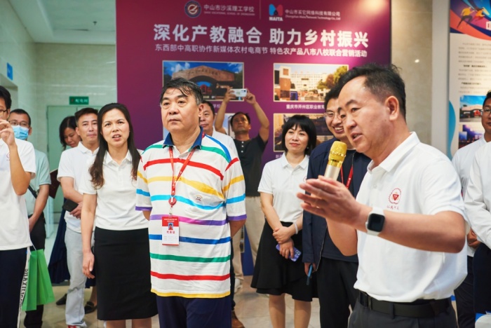 学校党委书记冯子川向教育部职业教育与成人教育司二级巡视员刘杰等嘉宾介绍道,沙溪理工作为“全国教育系统先进集体”“全国农村成人教育先进学校”,始终坚持为“一镇一品”培养高技能人才,服务当地企业转型升级,受到企业欢迎和群众好评。去年,学校还参加东西部中高职协作新媒体农村电商节,举办多场特色农产品八市八校联合营销活动,切实服务乡村振兴。