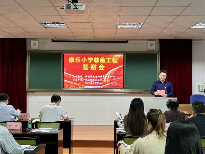 “崇文乐善、厚德进取”是沙溪人精神。2023年,中山市泸州商会爱心企业家积极为康乐小学翻新校园所有课室和一些场所,优化办学环境,为教育事业提供了大力支持,给孩子们带来了更好的学习条件。为了表达对中山市泸州商会爱心企业家们的感激之情,4月13日上午,康乐小学慈善工程答谢会在学校报告厅隆重举行。中山市沙溪镇党委书记徐成彬、副镇长余添宏、党政办主任贝鹏程、教体中心主任宁云志、中山市泸州商会会长邓明超、爱心企业家代表,以及沙溪各学校校长、康乐学校家长、教师、学生代表等近200人出席了本次慈善工程答谢会。