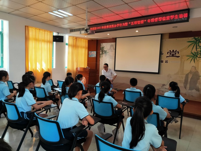 为进一步规范学校管理,促进学校发展,规范义务教育阶段学校规范办学行为和督促中小学校严格落实“五项管理”要求,9月8日上午,沙溪镇规范办学行为工作组成员对龙瑞小学进行2021年秋季规范办学行为暨“五项管理”专项督导检查。