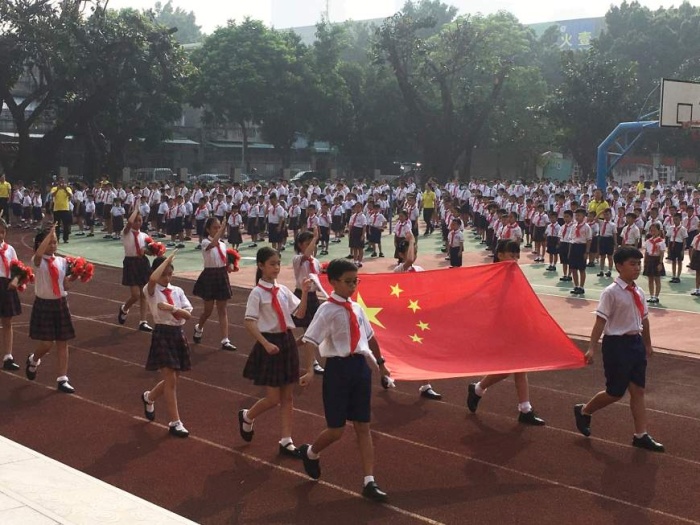 学校游鲤队的队员们早早地集中在龙门牌坊前欢迎大家返校,一句问候,一个微笑……,多么温馨。熟悉的歌声响起来了,“少年已经准备好,鲤跃龙门要出发……”随着校歌《阳光龙小鲤》欢快的节奏,各班同学在班主任的带领下,集中在操场,准备参加“鲤遇新学期 把握好时机”新学期第一次升旗暨欢迎新生开学仪式。