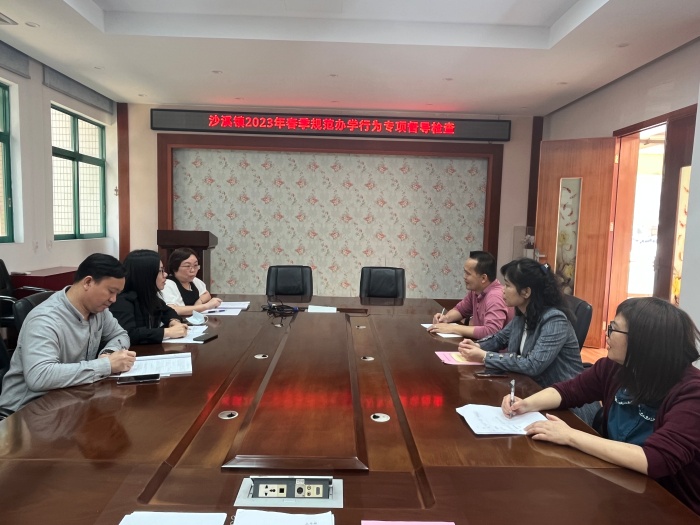 为落实国家“双减”政策要求,加强中小学规范办学行为管理,根据《沙溪镇2023年春季规范办学行为专项督导检查的通知》要求,3月9日上午,由沙溪中学副校长肖林森、申明亭学校主任黄枚玉、濠涌小学主任雷艳组成的沙溪镇规范办学专项督导检查组,到龙瑞小学开展2023年春季规范办学行为专项督导检查。龙瑞小学高玉璇校长、杨飞羽副校长接待了督导检查组成员。