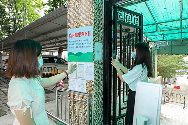面对体温异常并伴有咳嗽的同学,校医迅速将其带到校门附近的临时隔离区并告知班主任通知家长接回。学校严禁体温异常、有重点疫区旅居史、与重点疫区人员密切接触或疑似症状者进入校园。