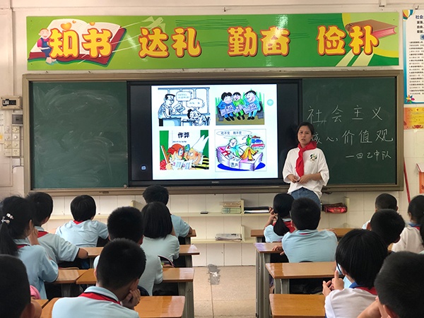 为弘扬社会主义核心价值观,让学生进一步领会价值观的重要性和深刻内涵,7月3日下午,沙溪镇濠涌小学各中队开展了“树立社会主义核心价值观”主题队活动。