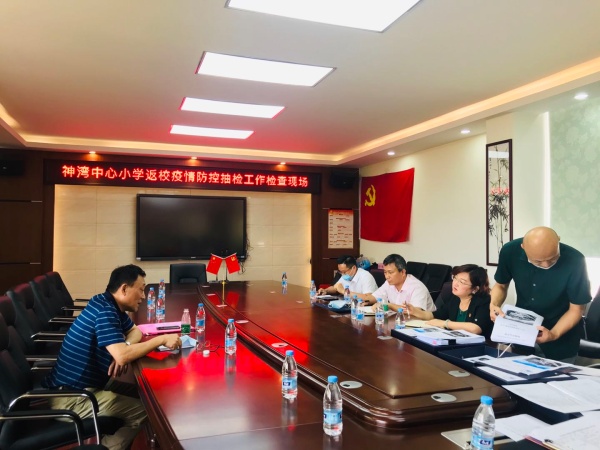 结束炎炎烈日下的实地走访和查看询问后,廖诚副书记及随行人员、朱宝明主任、李秀琼老师与谭瑞香校长等人进入学校二楼指挥部,进行了返校防疫防控抽检工作座谈。随行人员对照评估验收检查明细表,开始查阅学校疫情防控责任体系及工作机制、方案制度等各项档案资料,仔细翻阅了开学工作方案等“两案九制”、师生健康台账、疫情防控培训、开学应急演练、校园封闭管理等学校疫情防控相关资料,廖诚副书记则结合学校开展的返校准备工作,与谭瑞香校长及学校行政班子进行了真诚的沟通交流。廖副书记充分肯定了神湾中心小学在校园疫情防控和返校工作方面付出的努力,高度评价了学校开展的工作,既落到了实处,又做得井井有条、细致入微。在抽检工作的座谈现场,廖书记语重心长地与谭瑞香校长说道,除了防疫,还要防“心”,要时刻重视并关注师生、家长的心理健康,与家长保持密切的联系,利用好家长会、家访等形式,做好学生心理、生活状态的跟进与反馈。此外,廖书记强调,返校前后,学校要提醒班主任做好学生家庭情况的调查了解,要给予离异家庭、寄养家庭、经济困难家庭、父母失业家庭等类型学生足够的情感关心与生活重视,做好教师、家长的情绪调节与焦虑排解工作,为学生提供卫生健康、温馨和谐的生活与学习环境。