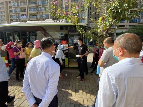 然后,由公交公司的苏队长传达市教体局有关校车的疫情防控要求。校车所有工作人员必须持有粤康码才能上岗,每辆校车必须配备测温枪和消毒用品,每天对每辆校车进行全面消毒,对每辆校车进行安全检查,保证行车安全。学生上车前必须测温,详细记录每位学生的健康状况,如发现体温超过37.2度的学生,严禁该生上车,并及时通知家长。