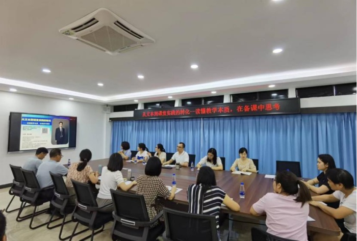 第二、《新课标》视域下备课的智慧。陈永畅副校长从备课的整体性和灵动性两个方面展开了详细的讲解。整体性方面主要从教参如何“读”进行剖析,包括:一读整册概述,二读单元分析,三读学习目标,四读教学建议。灵动性方面主要从教材如何“解”三个方面介绍,讲到教师要用联系的眼光审读教材,要关注教材中的重要信息,用教材以“外”的信息反思教材设计,促使教师进一步理解新课标的内涵,提升精准备课的能力。