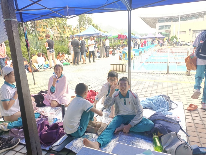 备赛热身时,看到实小的游泳健儿有说有笑地互相打气加油,那稚嫩的脸蛋上却闪耀着坚毅的目光,是夜以继日的训练,是敢于争先的意志,是勇于吃苦的精神,是流淌在游泳馆的汗水,这一幕,这一眼就是体育运动的魅力!