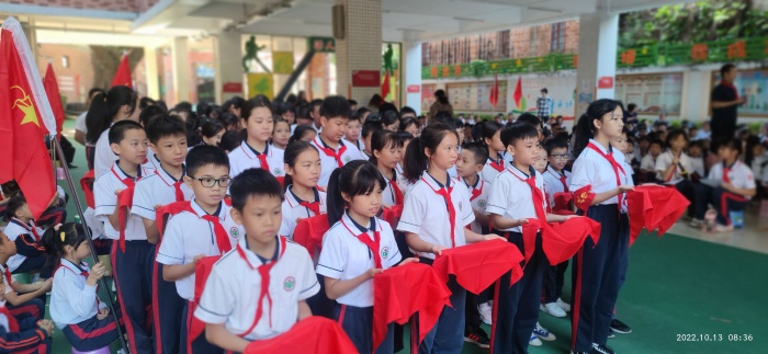 为贯彻落实《中共中央关于全面加强新时代少先队工作的意见》,进一步推动少先队党史学习教育走深走实,教育引导广大少先队员听党话、跟党走。在10月13日,少先队建队日73周年之际,喜迎二十大的召开,石岐太平小学少工委组织开展主题为“喜迎二十大,争做好队员”主题大队活动暨第二批少先队员入队仪式。