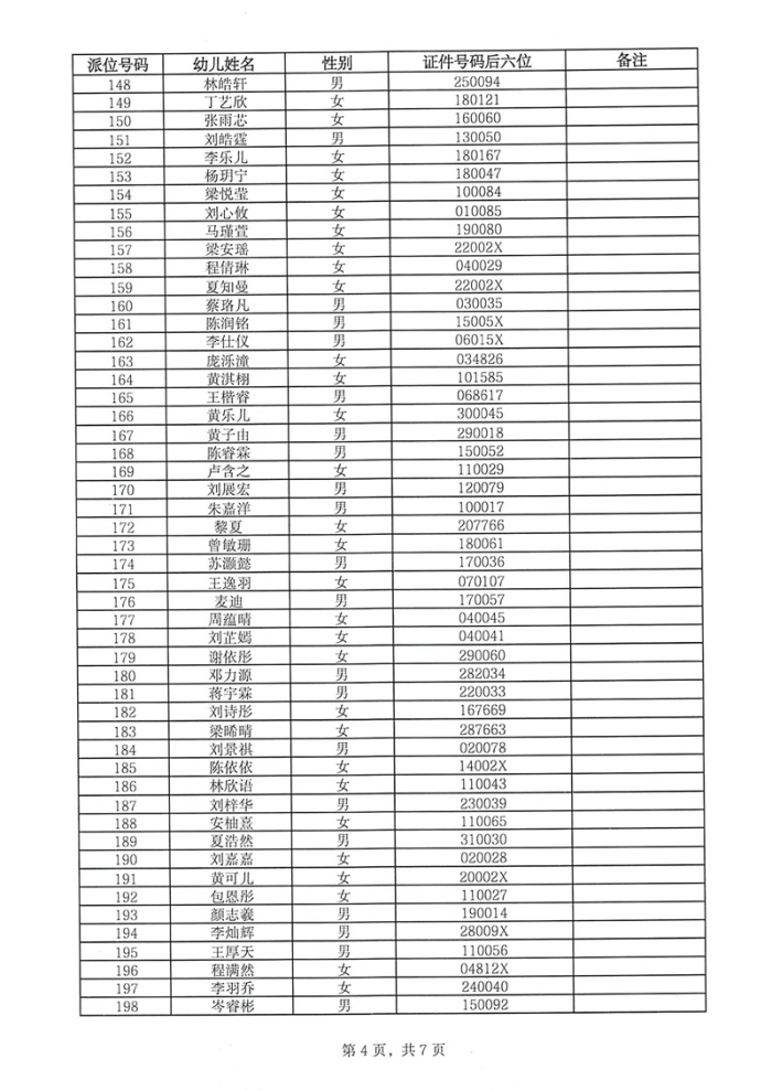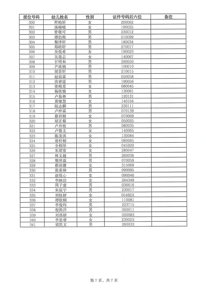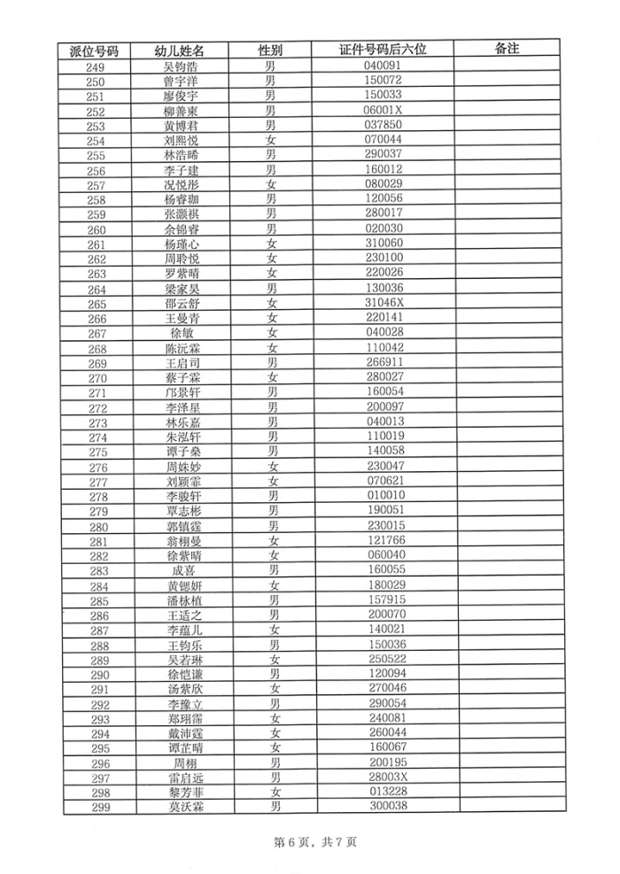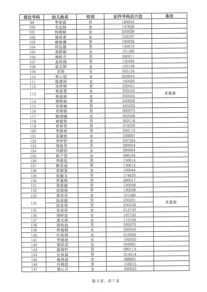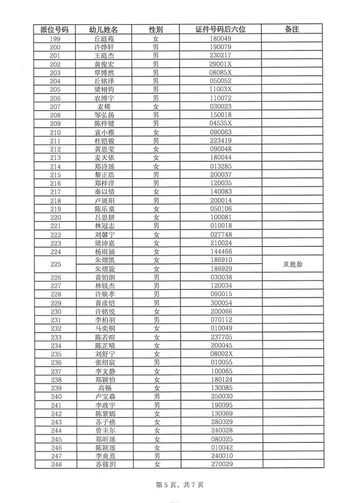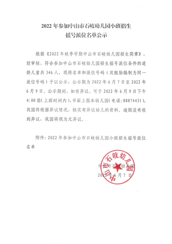 2022年参加中山市石岐幼儿园小班招生摇号派位名单公示