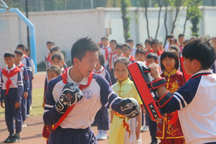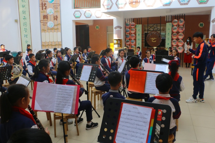 上午,在李正可校长带领下,督导组首先迈上“阳光大道”,一边凝神欣赏学生为庆祝建党100周年共同绘就的“百图颂中华”的作品,一边认真聆听德育处主任柯小敏解说学校文化。随后,督导组来到向上广场,观看线描画社团和水彩社团的书画展,两个社团的学生都用简单的绘画工具,完成了一幅幅意境优美的作品,给督导组带来了乐趣和美的享受。督导组走进中庭,欣赏了民乐社团的《花儿与少年》,欢快的乐曲给人们带来心灵的宁静,接着是高年级学生的口风琴表演,那宏大而整齐的口风琴演奏充分展示了学校推动“器乐进课堂”的成效。然后大家来到水墨室,惊叹于原本普通的墨色,在学生们浓淡相宜的笔触下,别有一番韵味,感叹于现代学生们对中国传统文化的热爱。国学园内,随着李晟赫老师指挥棒的挥舞,激昂的交响乐瞬间响起,十余种乐器共同演绎出动人的旋律,乐曲各声部层次突出,充满和谐之美。在观赏完低年级学生充满童心童趣的绘画后,督导组在庭院观赏合唱社团的表演,学生们清脆的歌声和优美的舞姿,让人们的心情也不禁跟着欢快起来。围棋社团的学生正在屏气凝神,棋盘之上的黑白双色是他们不见硝烟的战场。与此同时,搏击社团和武术社团的学生已经蓄势待发,他们的一招一式,翻转腾跃的灵活身影充满了力与美,中年级的武术操紧跟其后,一个个扎实的动作,一声声有力的呐喊,都代表了东方“六朗学子”的无限活力!最后,督导组来到棒球场,观看东方小学传统体育项目棒球的日常训练,棒球场上传接球练习、跑垒练习和挥棒练习,一切都是井井有条,督导组无不为球员们精彩的表现赞不绝口,拍手叫绝。