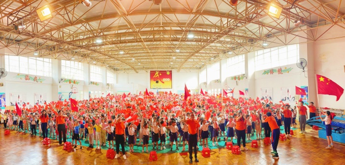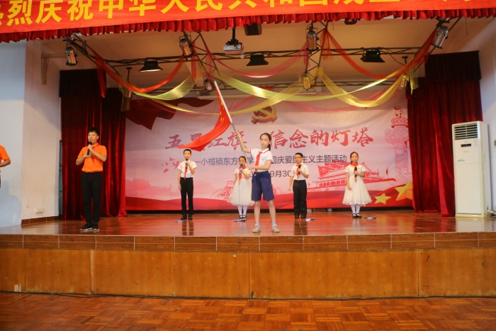 为庆祝中华人民共和国成立72周年,深入贯彻落实习近平总书记的系列重要讲话精神,加强社会主义核心价值观教育,激发老师和学生们的爱国主义情感,增进学生的集体荣誉感,9月30日上午,小榄镇东方小学全体师生怀着激动和自豪的心情,齐聚在体育馆,共同庆祝即将到来的祖国的72周年华诞。