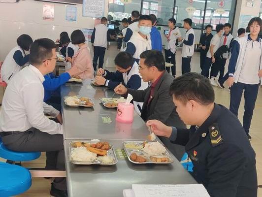 午餐时,检查组走进食堂就餐区,现场询问学生对餐食的意见,听取学生对改善伙食的心声,并自费陪餐,和学生一起品尝学校饭菜,切身体验学校伙食的口味和质量。据调查,学生对本校的伙食情况比较满意,检查组建议学校增加菜式的多样性,让学生有加丰富的菜式的选择,同时也要进一步加强就餐区的卫生清洁。