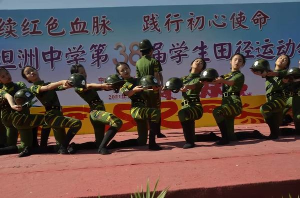 各种功能方队结束后,各班级方队以矫健的步伐,整齐的口号,饱满的精神状态依次入场。本届校运会以“赓续红色血脉 践行初心使命”为主题,各班按照时间顺序,依次向观众诠释自中国共产党成立至今,在这100年间发生的伟大革命历史事件。从“中共一大”的召开到取得脱贫攻坚战的胜利,43件伟大革命历史事件,在同学们充满智慧,充满创意,充满感情地演绎下,真实再现,在场师生无不为之动容,历史是最好的教科书!在此刻,师生们深深感悟,红色是不渝的百年初心,红色是昂扬的青春姿态,红色更是鲜亮的人生底色!